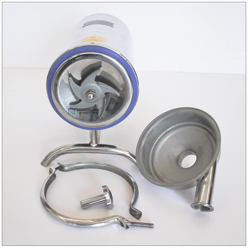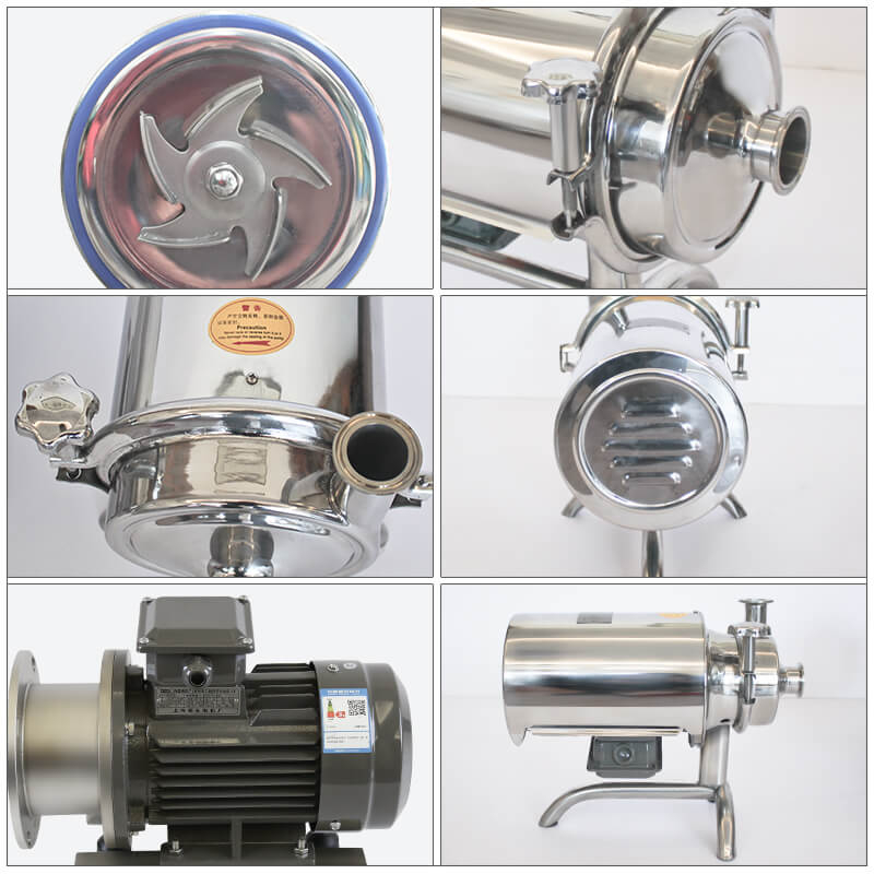 不銹鋼衛生泵(又名奶泵、飲料泵)屬單級、單吸式衛生泵,適合輸送牛奶、飲料、酒等各種液體。它是食品、化工、醫藥等行業不可缺少的輸送設備,特別適合于應用在管式殺菌、酸奶持溫設備、CIP清洗等阻力較大的系統中。葉輪安置在泵殼里面,它和泵軸一起旋轉,葉輪刀片以動能和壓能的形式將能量傳達給流體。該泵不可反向旋轉,正確的旋轉方向是順時針,從電機后面可看出泵的旋轉方向。